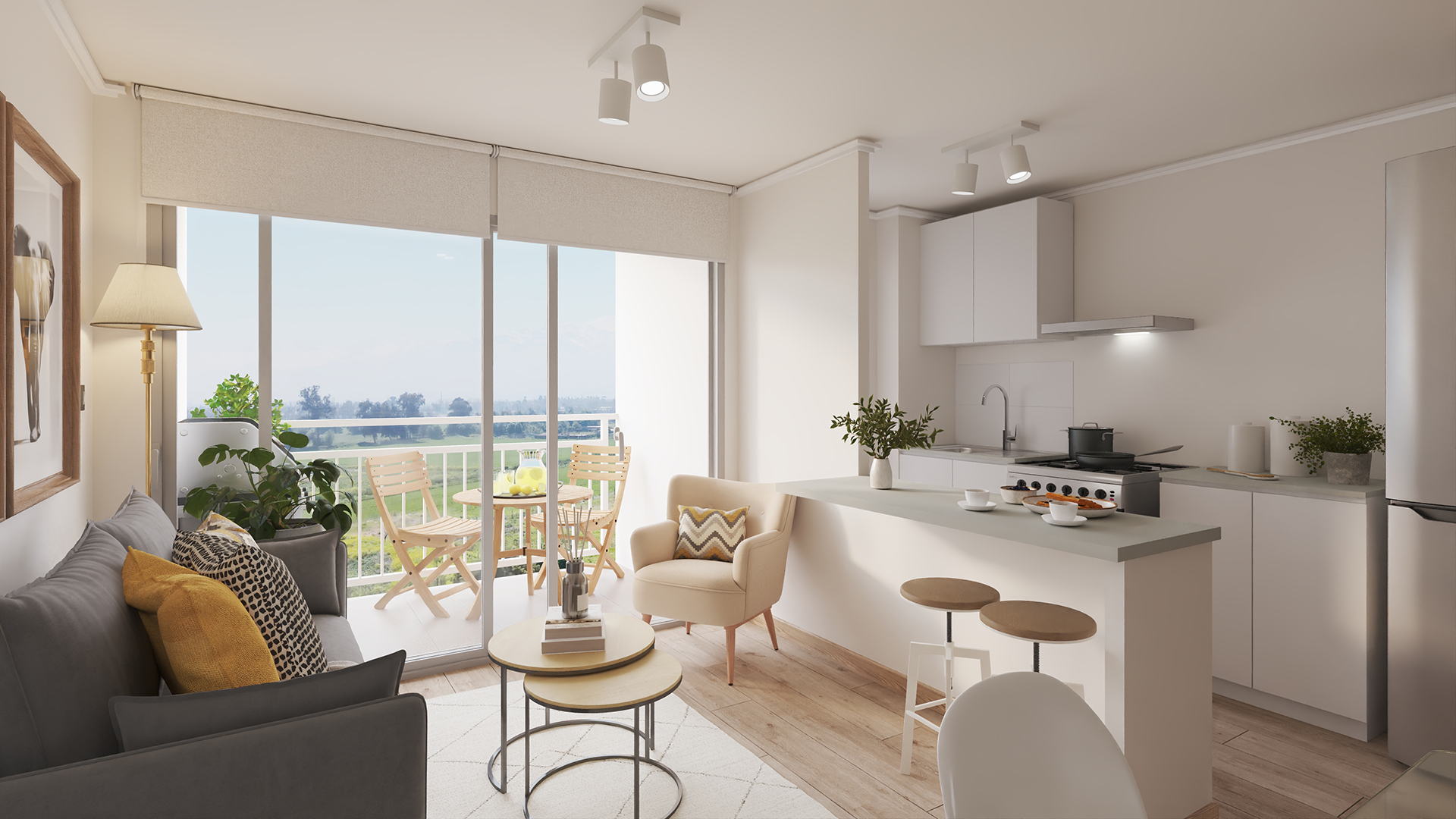 El único departamento con piscina en la comuna, ubicado en un condominio cerrado con paisajismo, seguridad y excelente calidad de construcción.