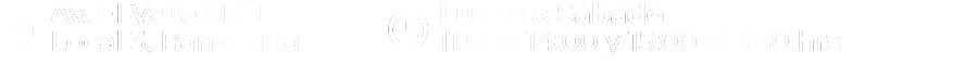 Lunes a sábado de 11:00 a 14:00 y 15:00 a 18:30 hrs.